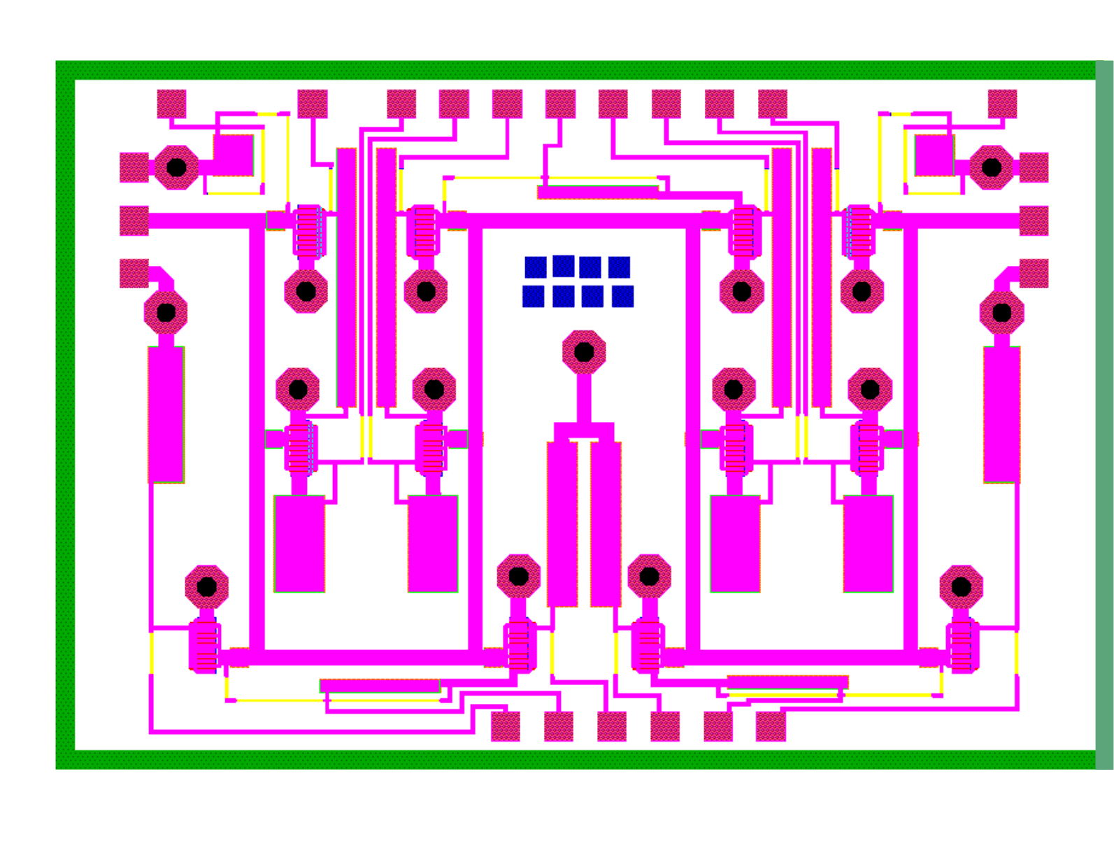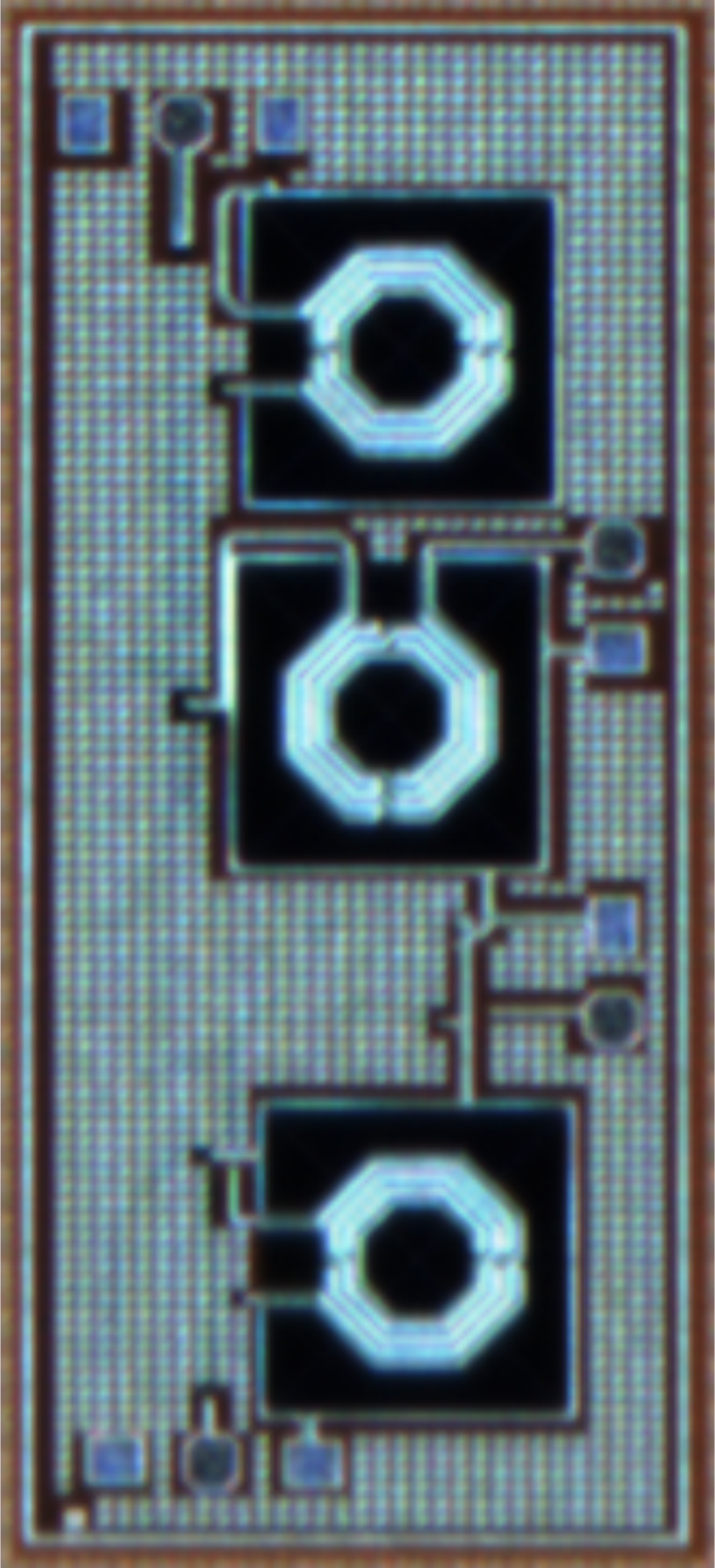 | RF Preamplifier, CMOS 0.18 XFAB | 2.4 GHz Power Amplifier, CMOS 0.18 XFAB | Dual band RF Amplifier, CMOS 0.18 XFAB |